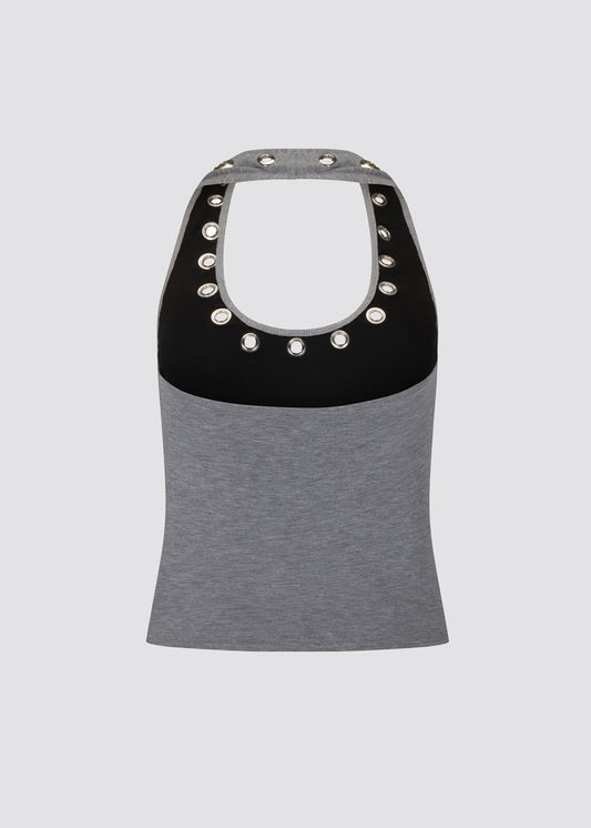 Gigi Eyelet Halter - grey