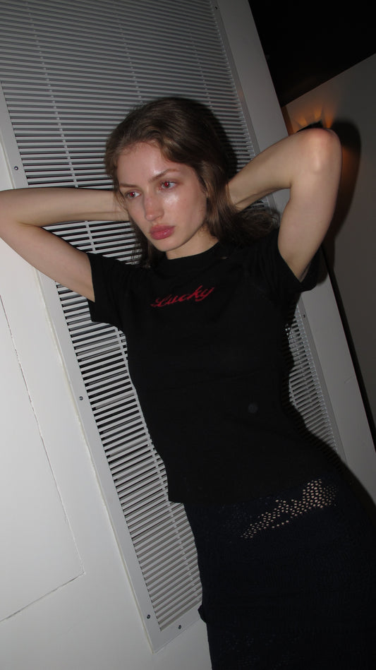 Lucky Knit Tee - black and red